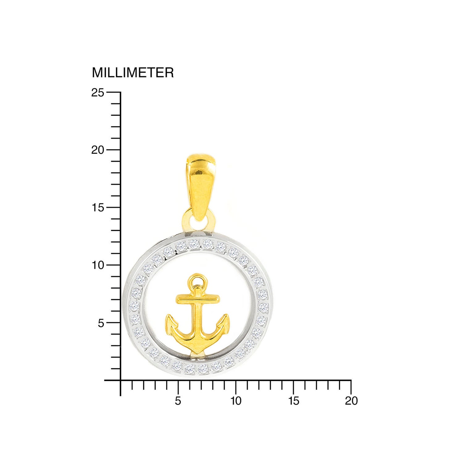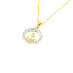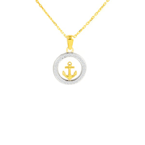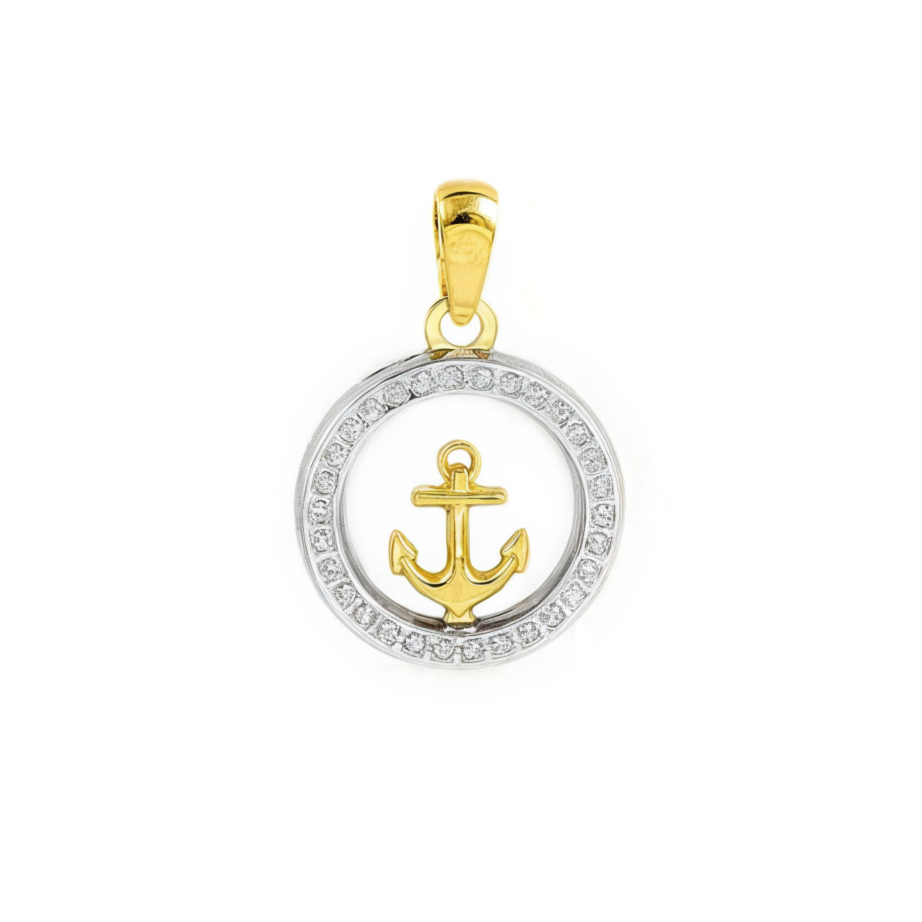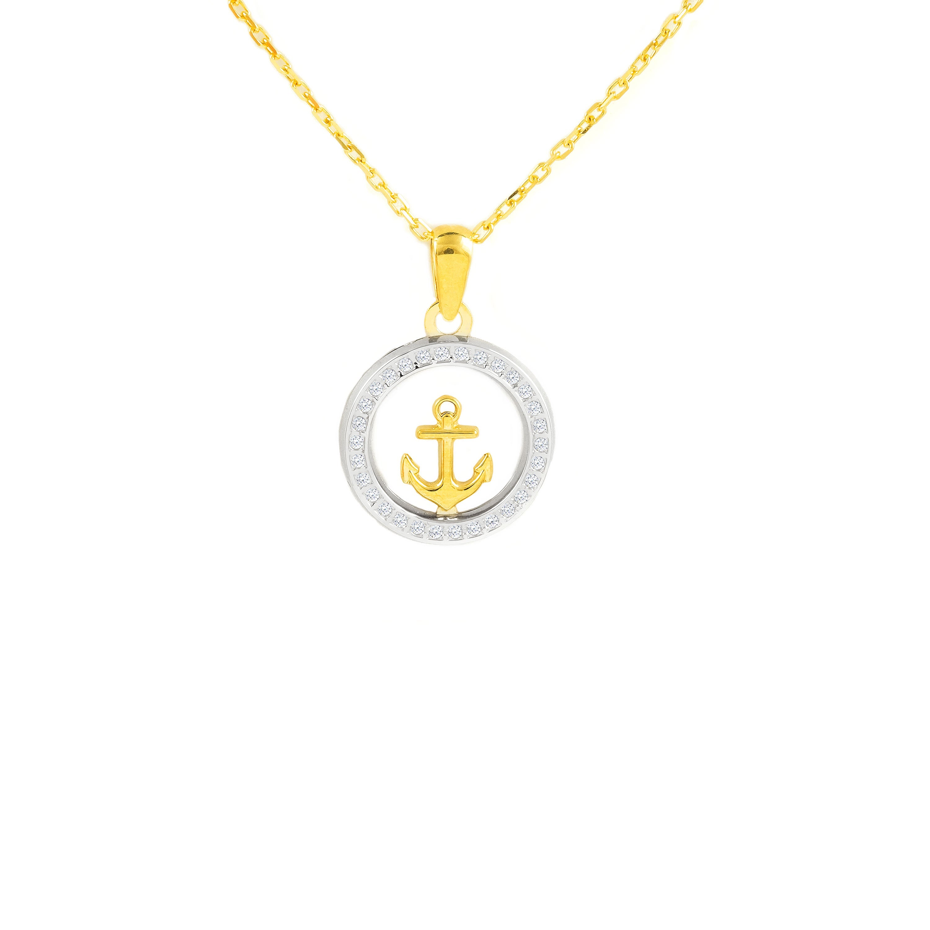 Women's-Girl's Pendant in 9K Two-Tone Gold with Round Shiny Zirconia Anchor