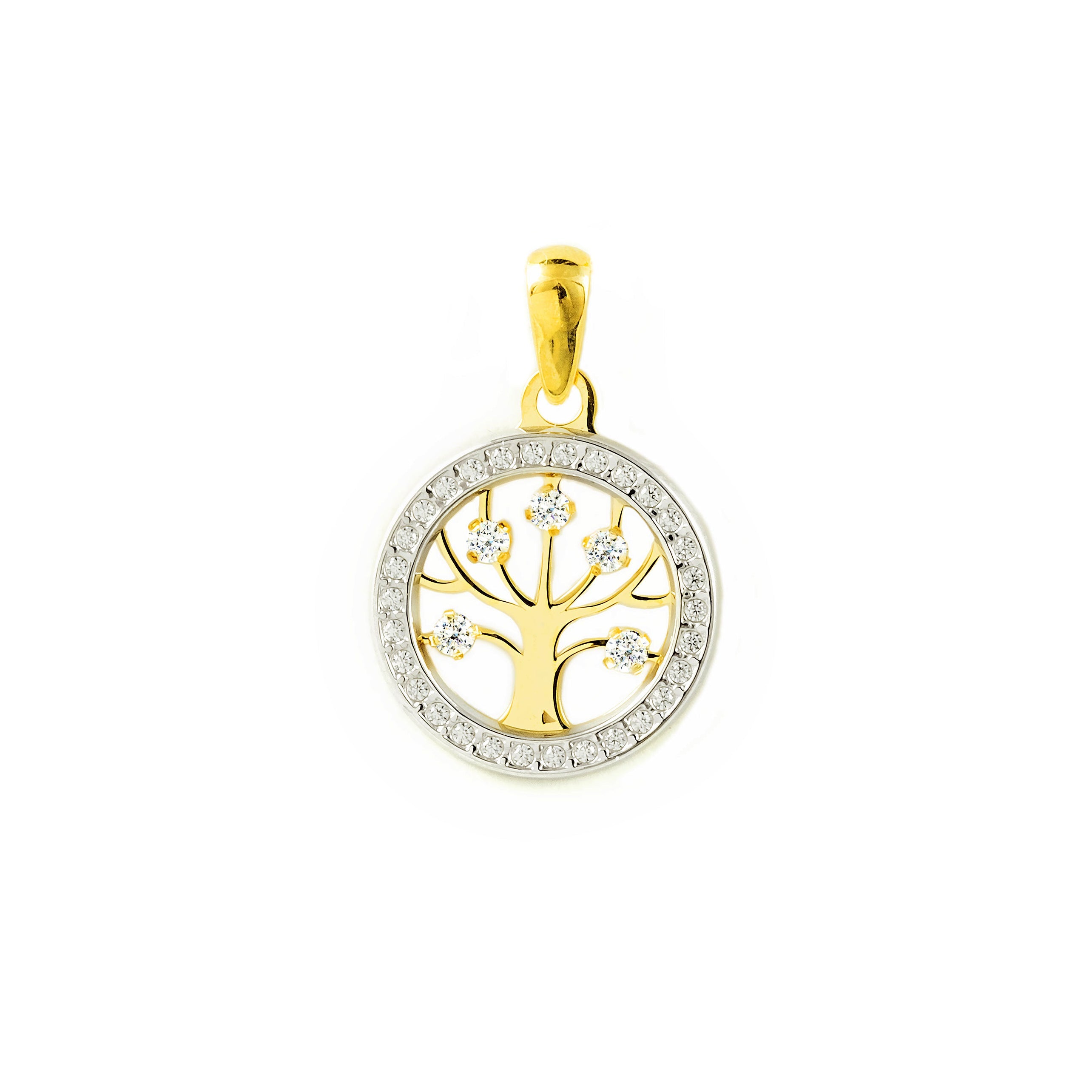 Woman-Girl Pendant Bicolor 9K Gold Round Tree of Life Shiny Zirconia