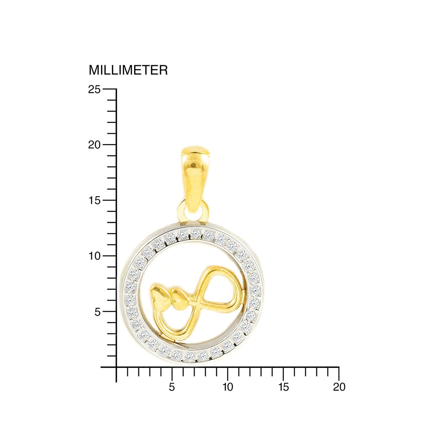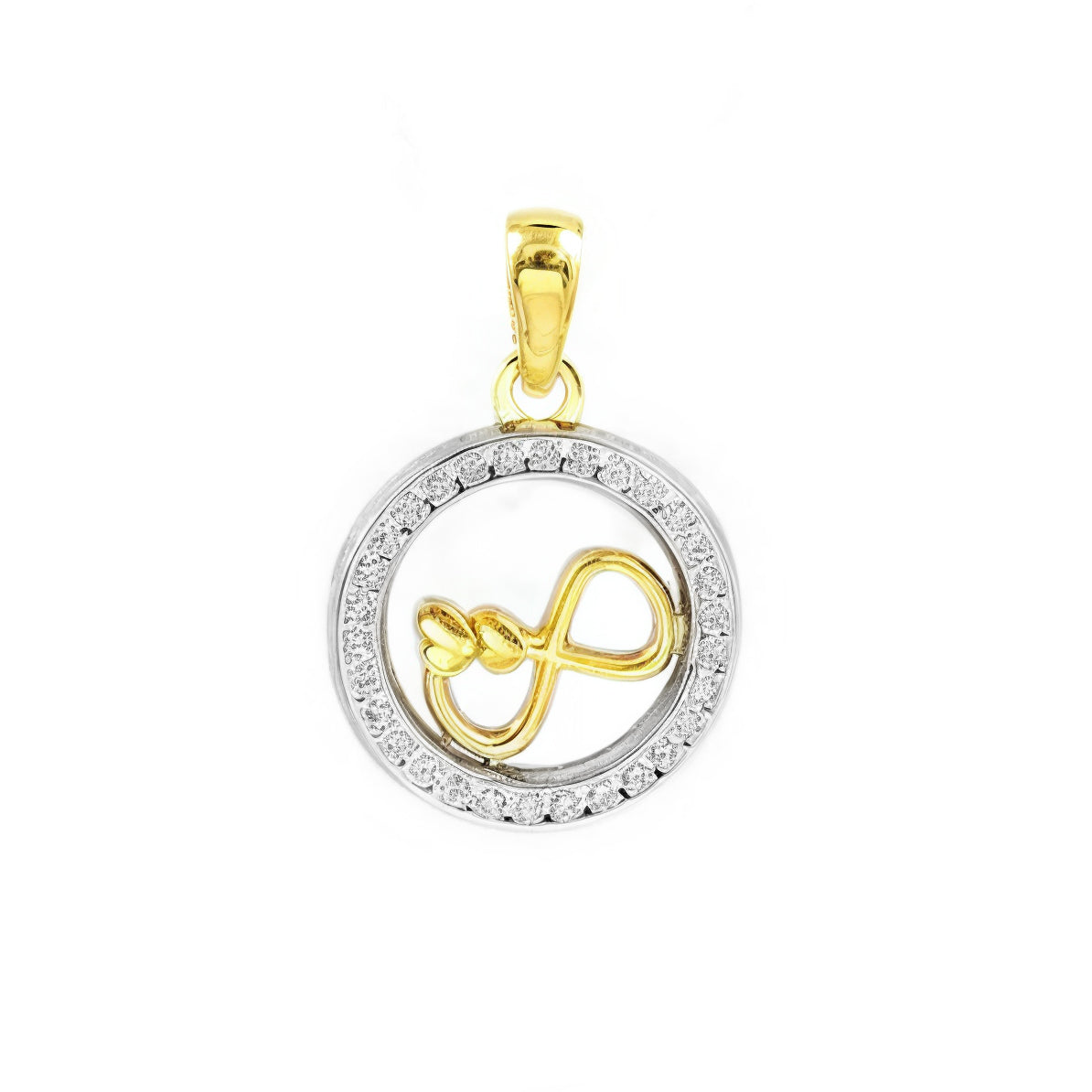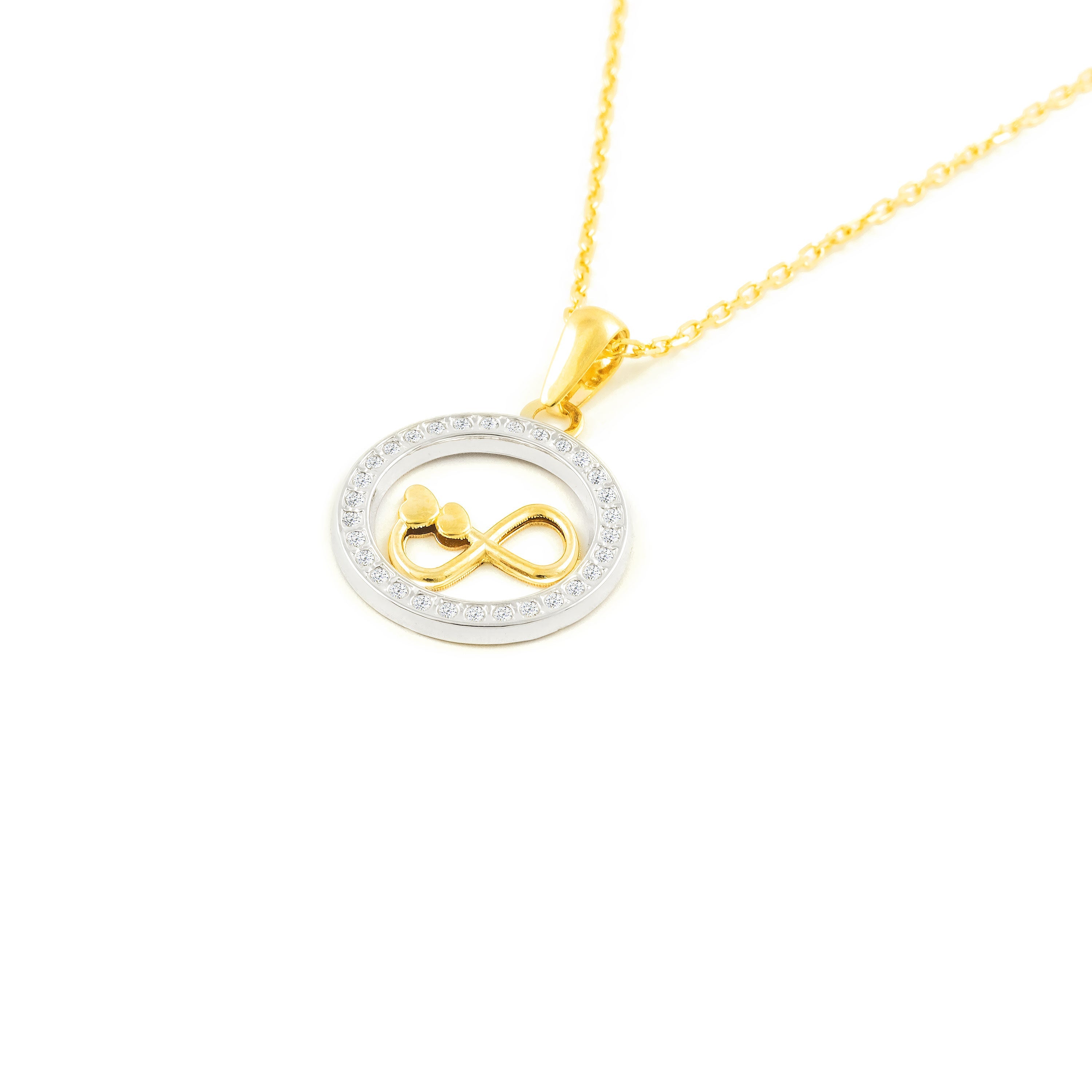 Women's-Girl's Pendant in 9K Two-Tone Gold with Round Infinity and Shiny Zirconia