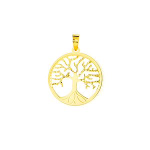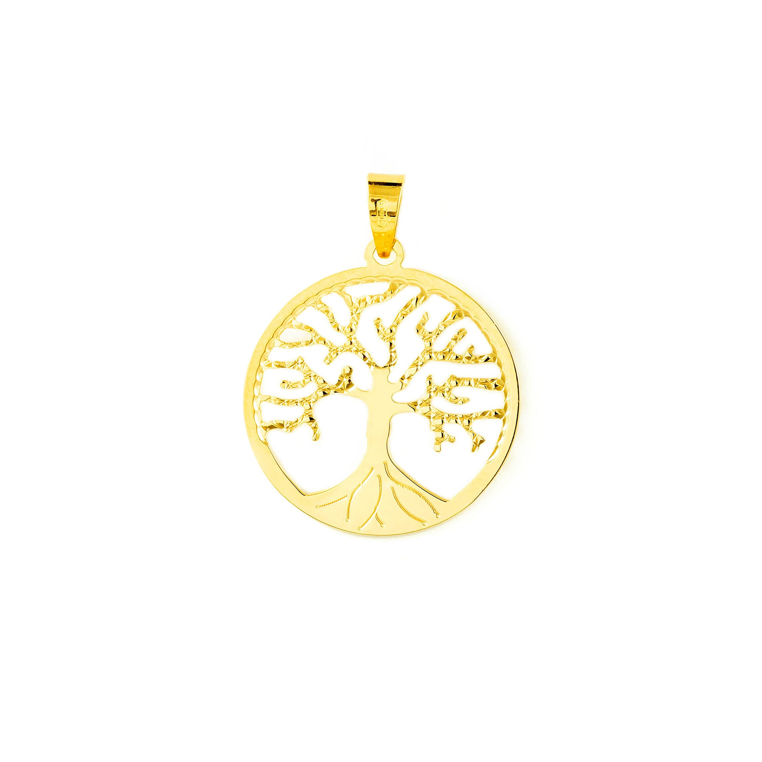 18K Yellow Gold Pendant Round Tree of Life Shine and Texture