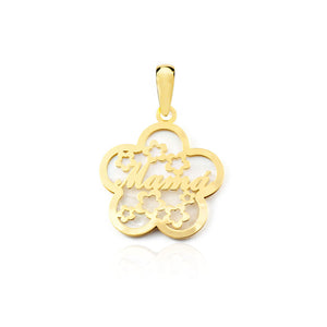 9K Yellow Gold Mother of Pearl Shiny Zirconia Mother Flower Pendant