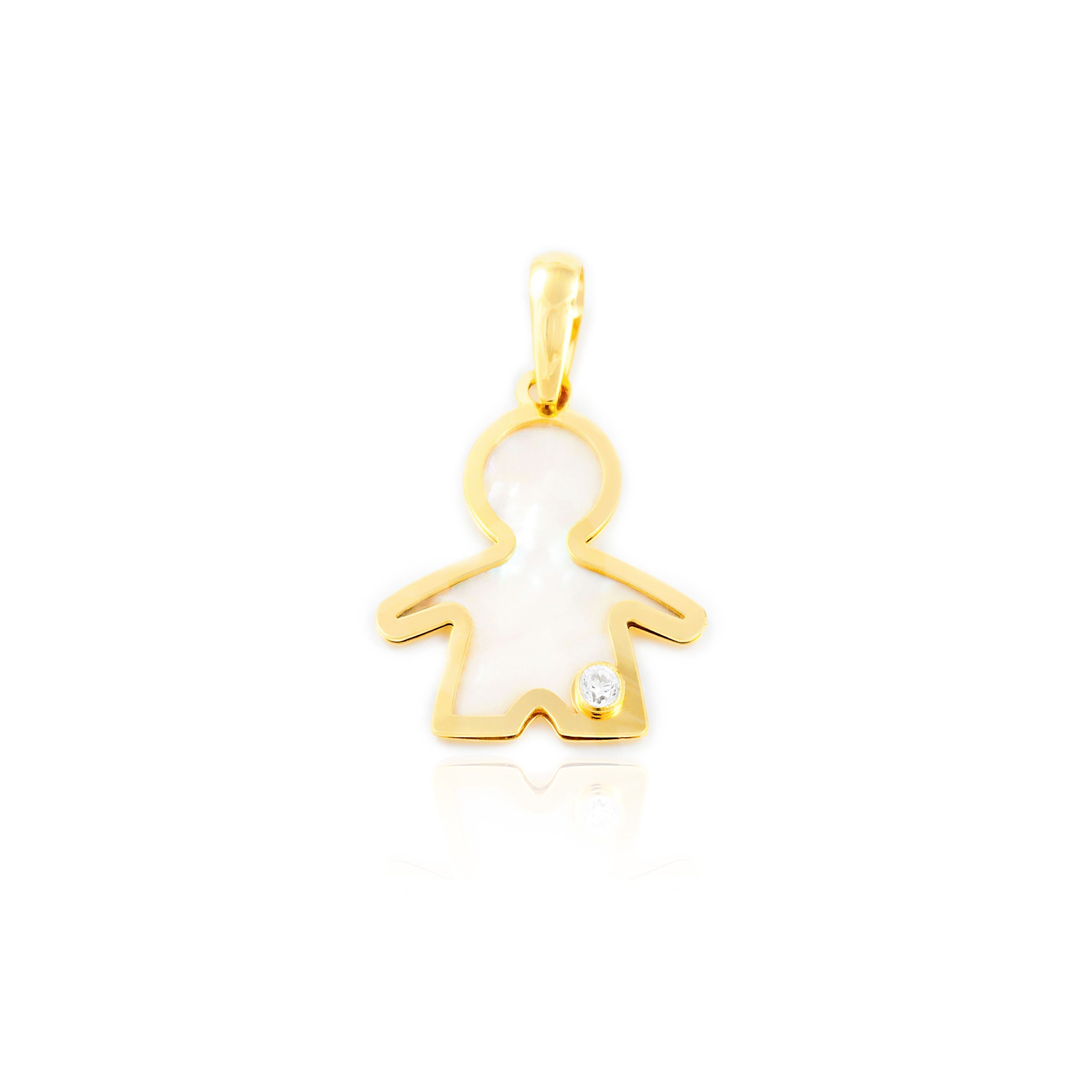9K Yellow Gold Mother of Pearl Child Shiny Zirconia Pendant