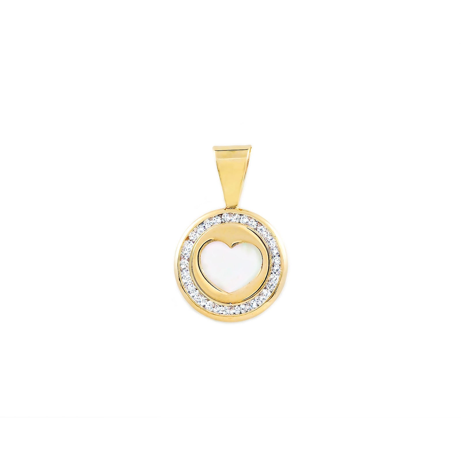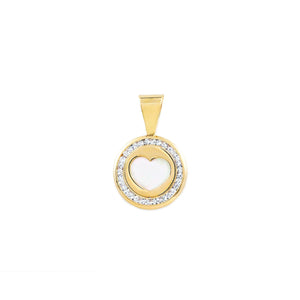 9K Yellow Gold Mother of Pearl Round Shiny Zirconia Heart Pendant