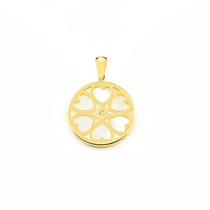 9K Yellow Gold Pendant Mother of Pearl Round Shiny Zirconia Hearts