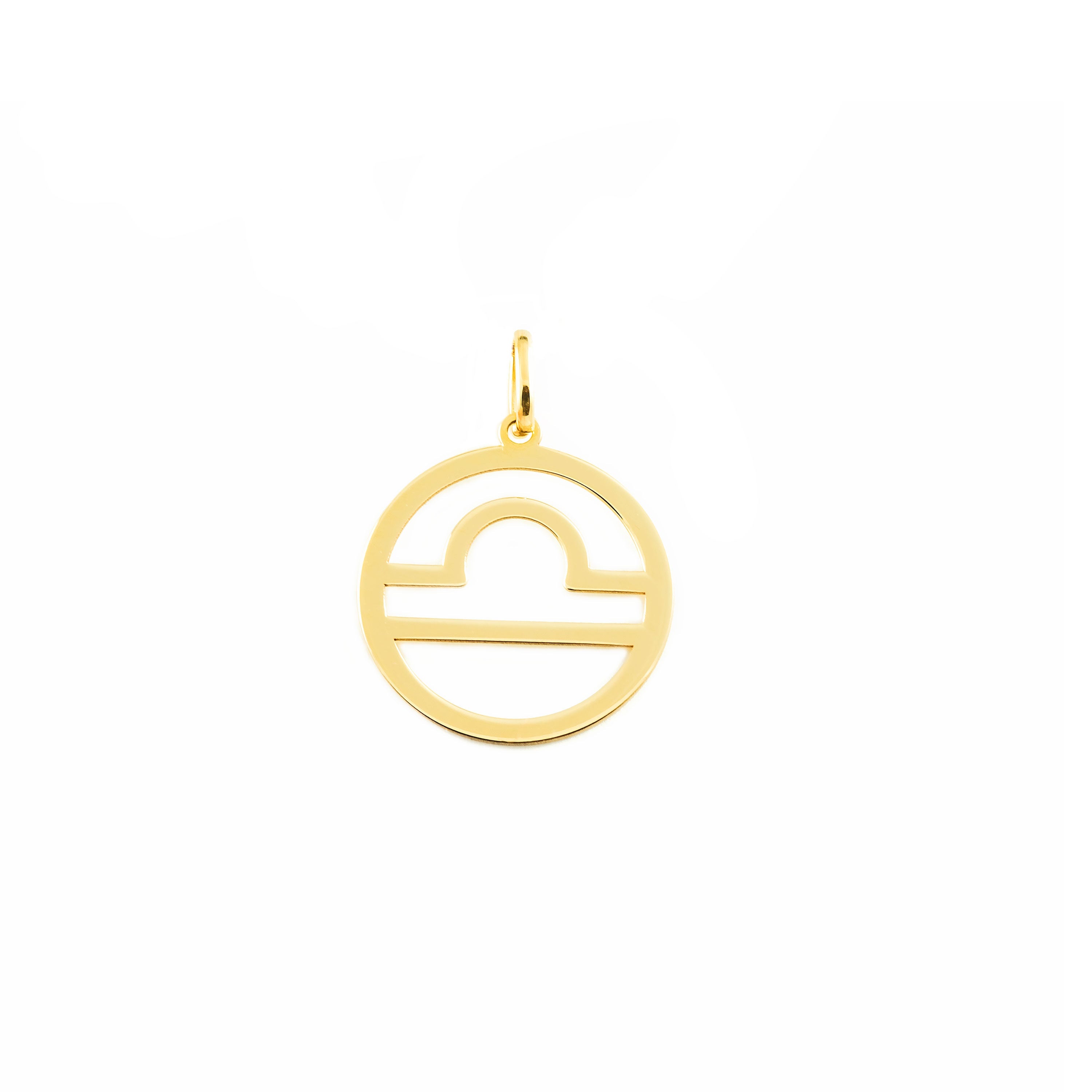 9K Yellow Gold Pendant Round Shiny Libra Horoscope