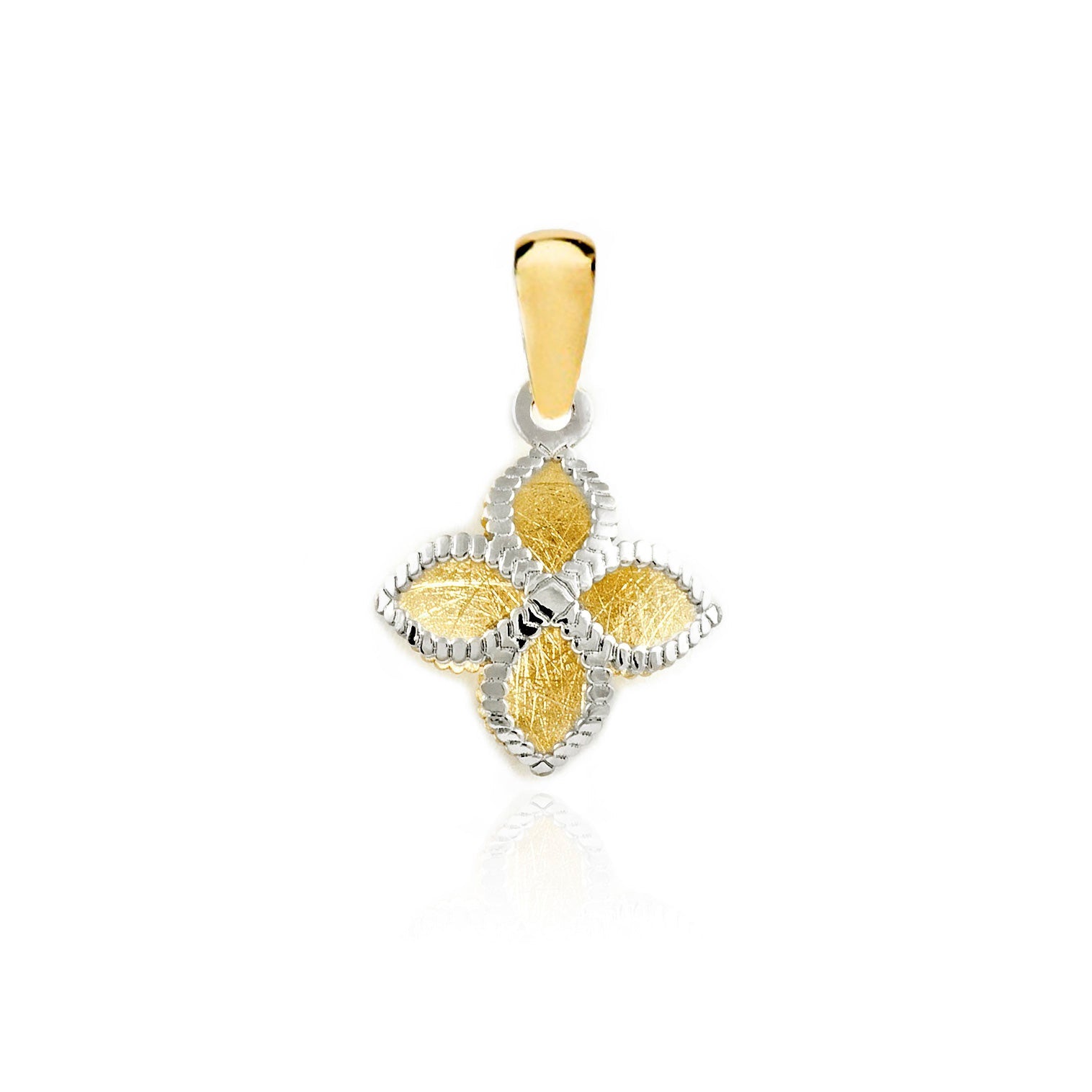 9K Bicolor Gold Pendant Matte Cross and Texture