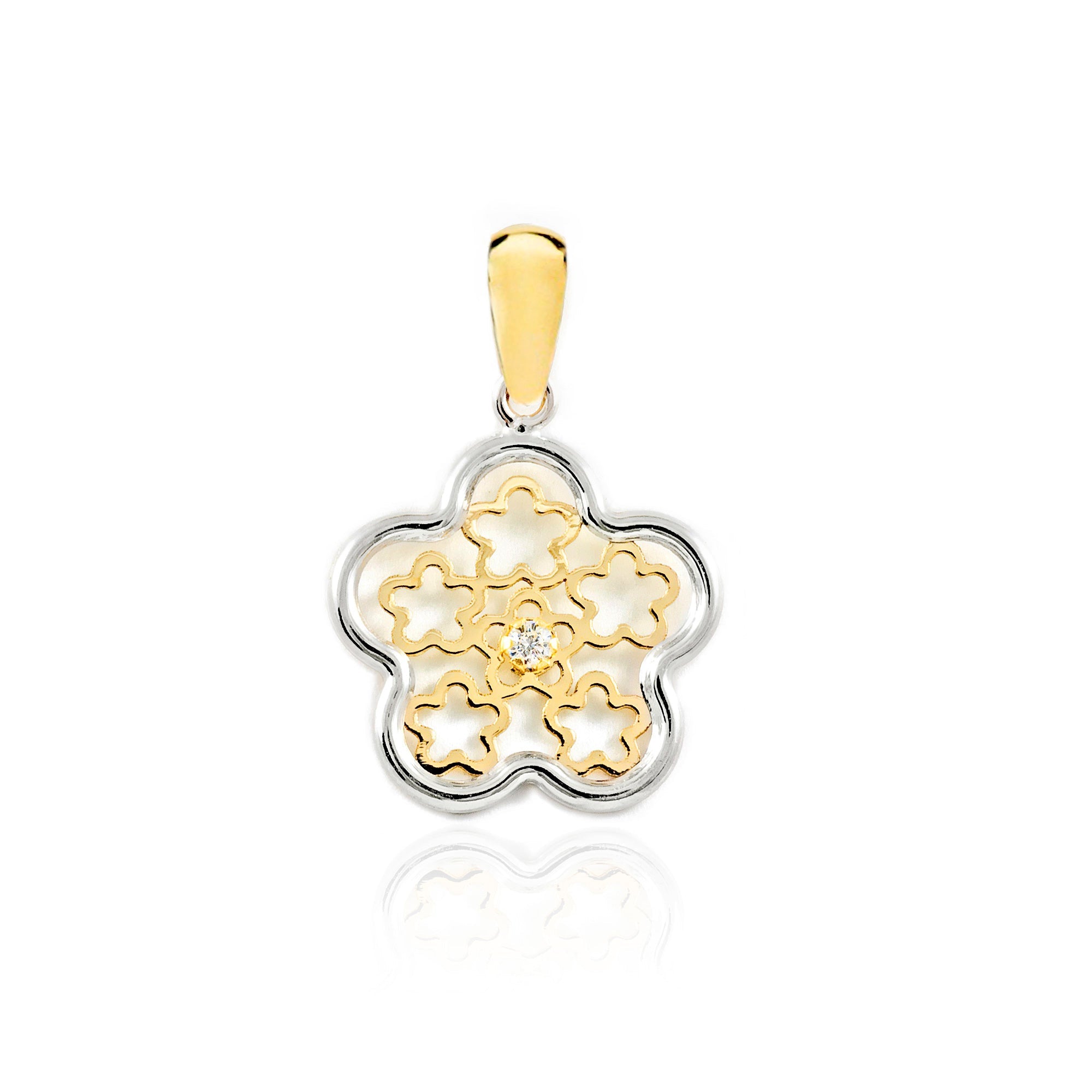 Bicolor 9K Gold Pendant Daisies Flower Shiny Zirconia