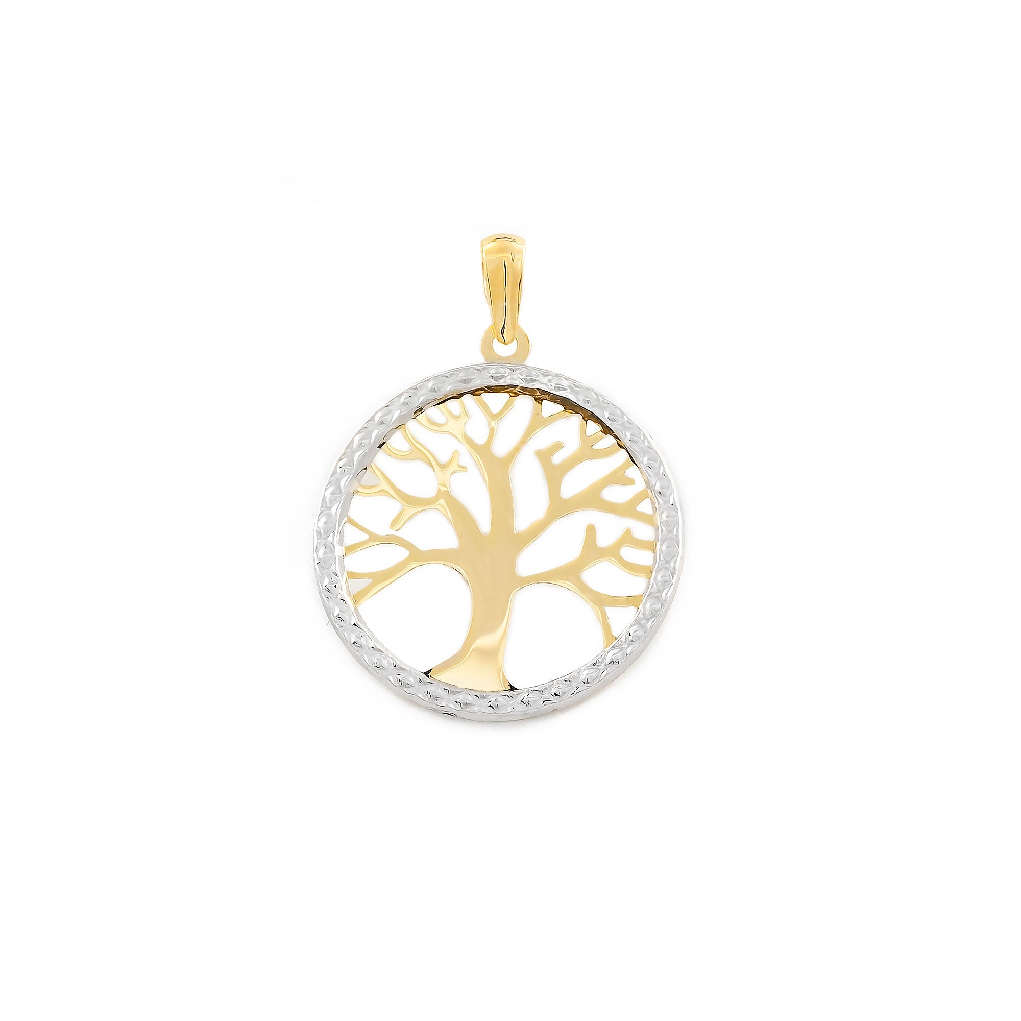 Bicolor 9K Gold Pendant Round Tree of Life Shine and Texture