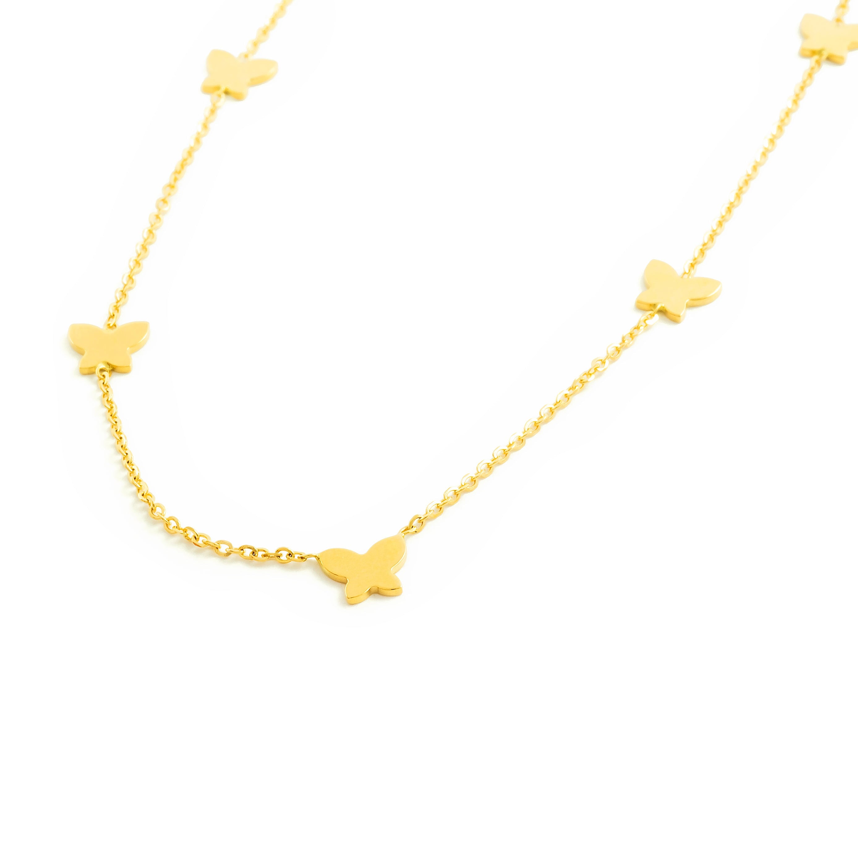 Women's Necklace 18K Yellow Gold Shiny Butterflies
