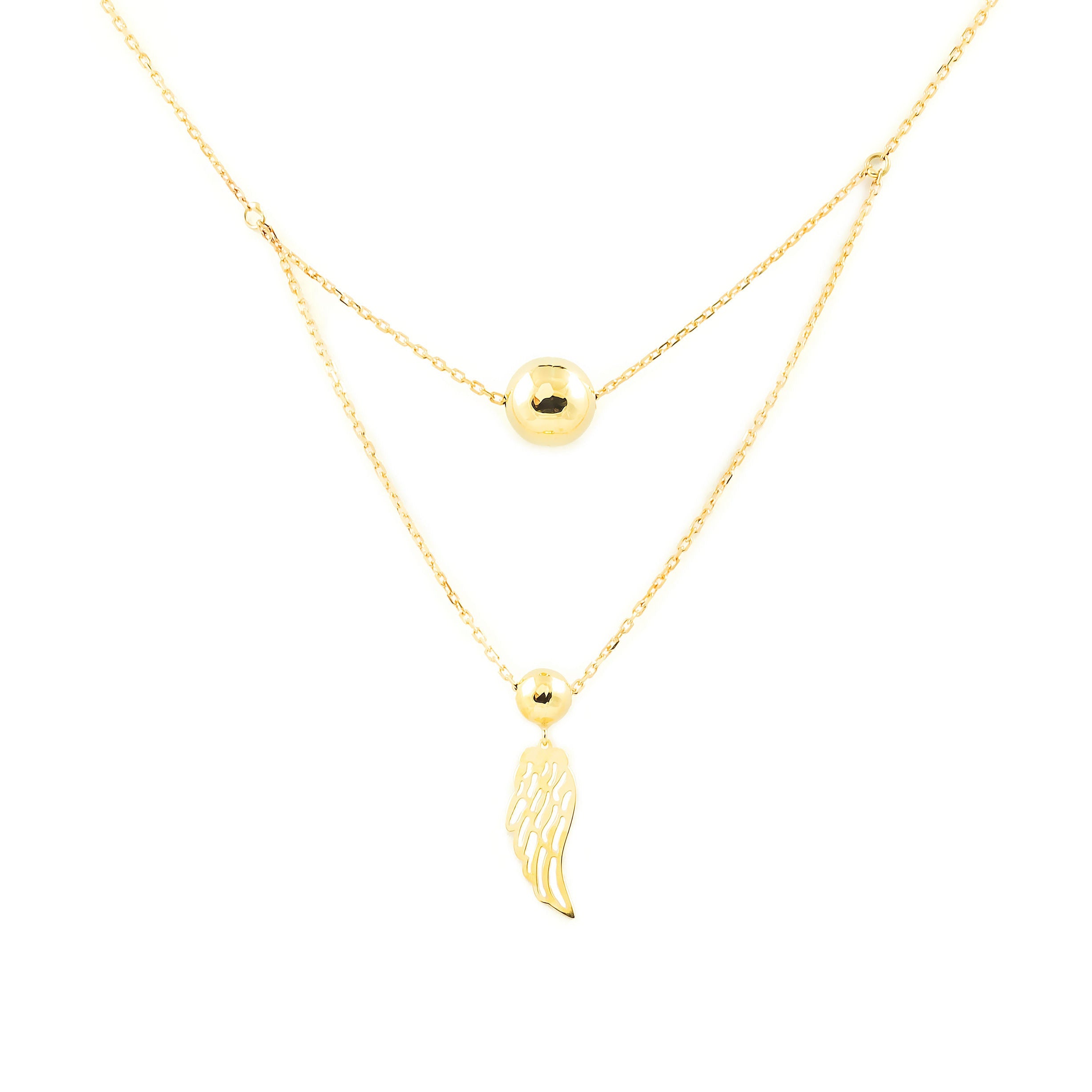 Women's Necklace 9K Yellow Gold Balls and Shiny Wing