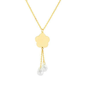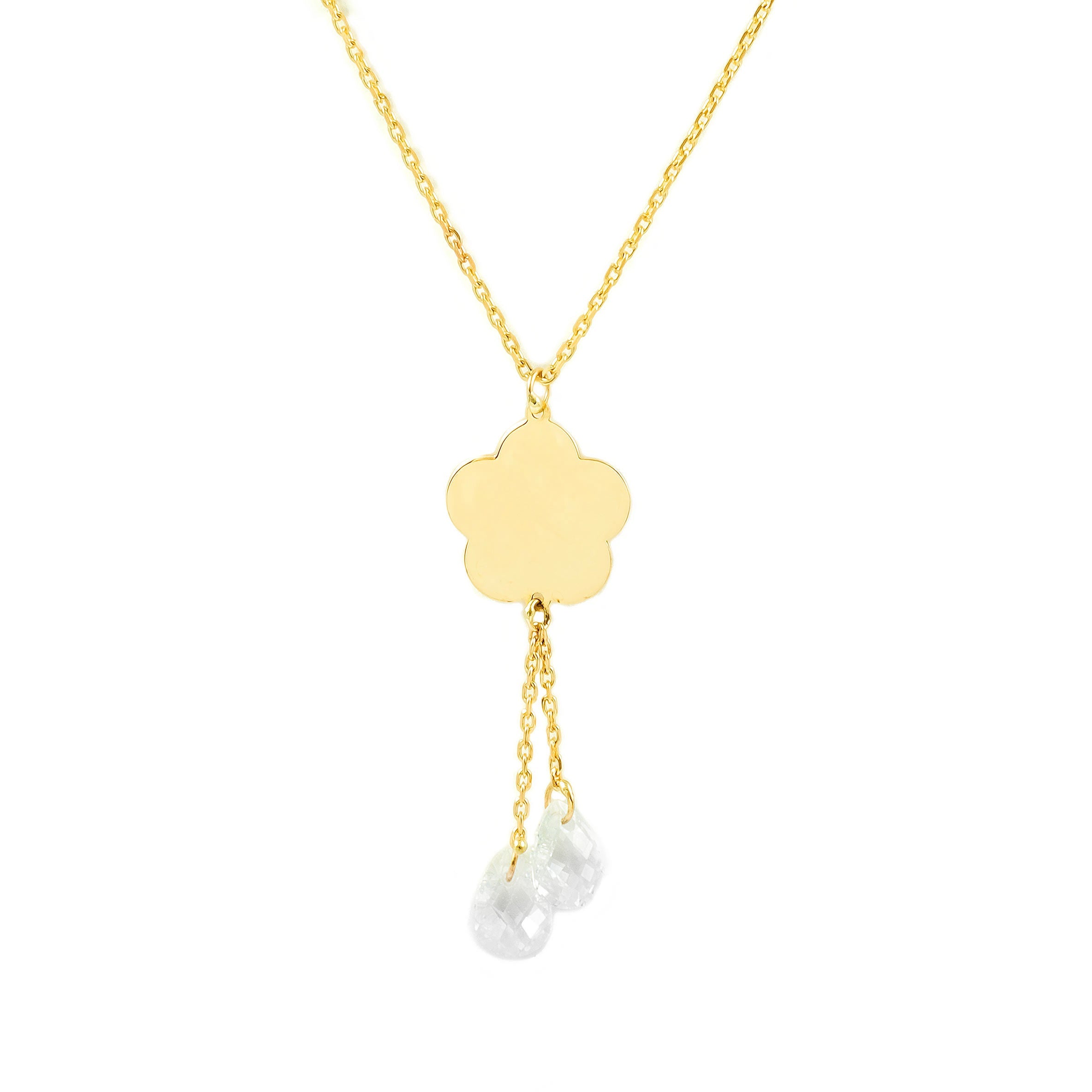 Women's Necklace 9K Yellow Gold Flower Shiny Zircons