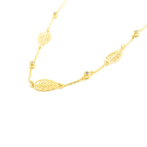 9K Yellow Gold Women's Necklace Shiny Zirconia Leaves