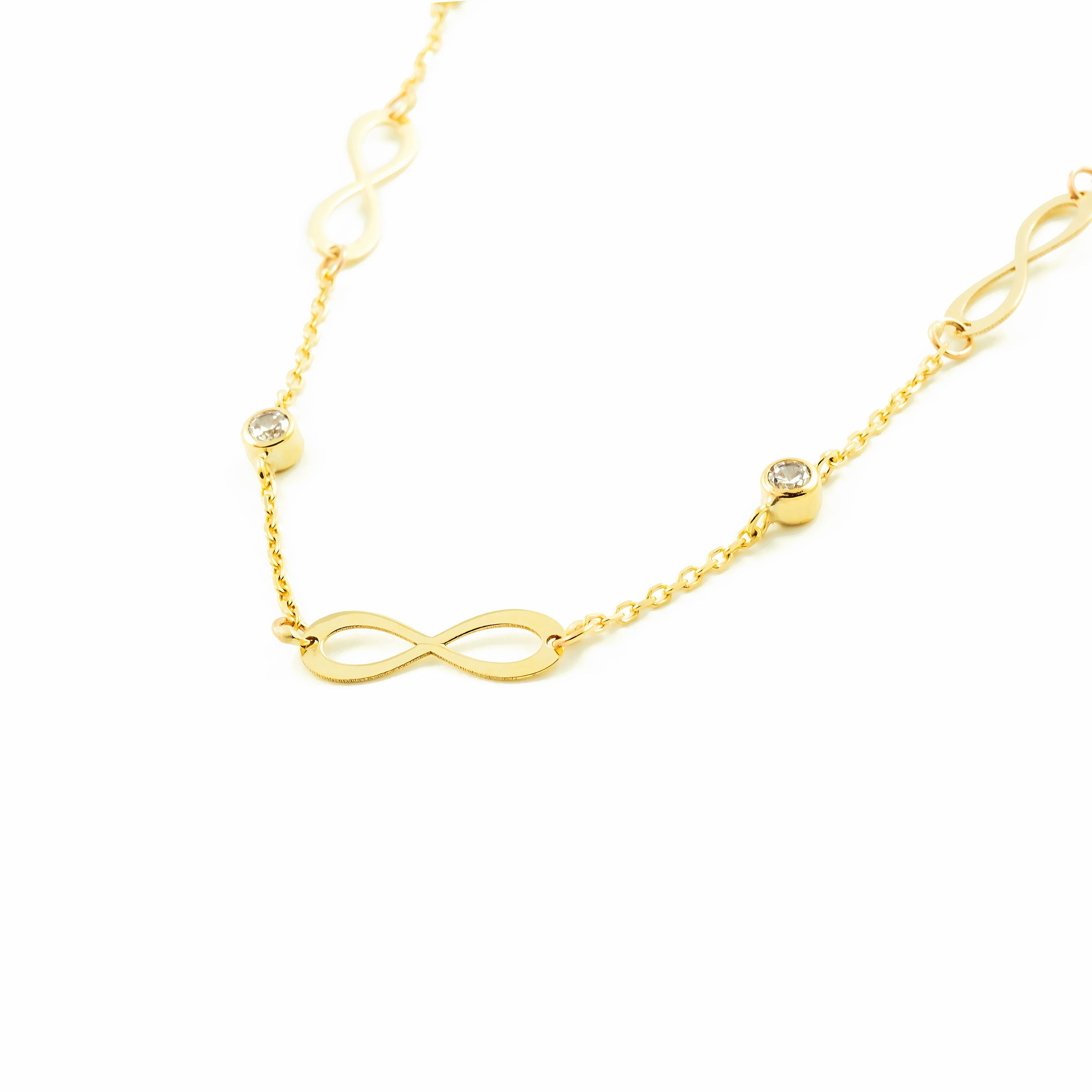 Women's Necklace 9K Yellow Gold Infinity Shiny Zirconia