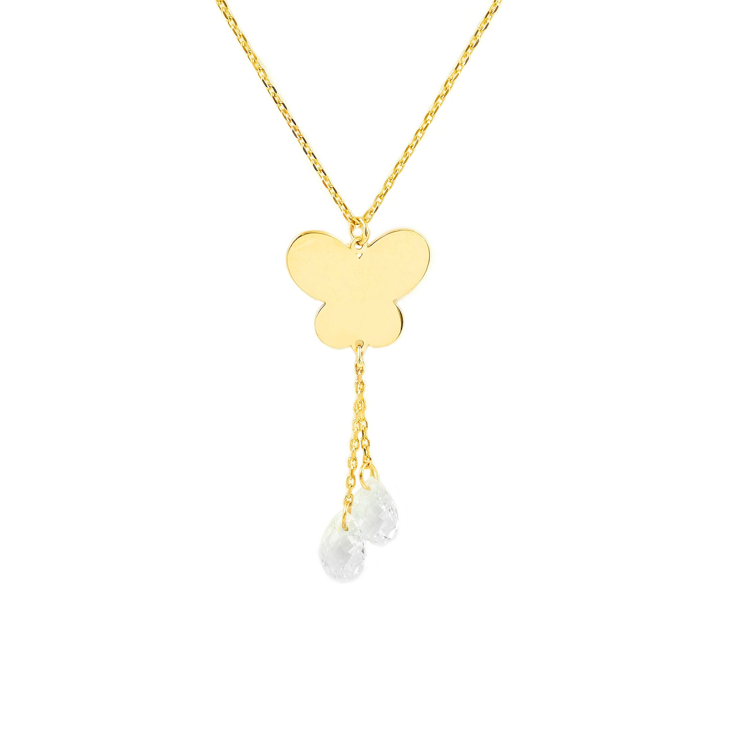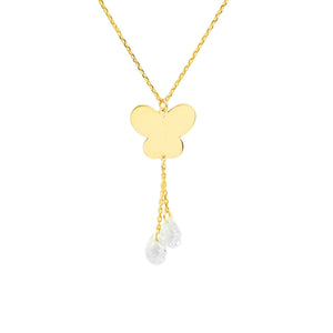 Women's Necklace 9K Yellow Gold Butterfly Shiny Zirconia