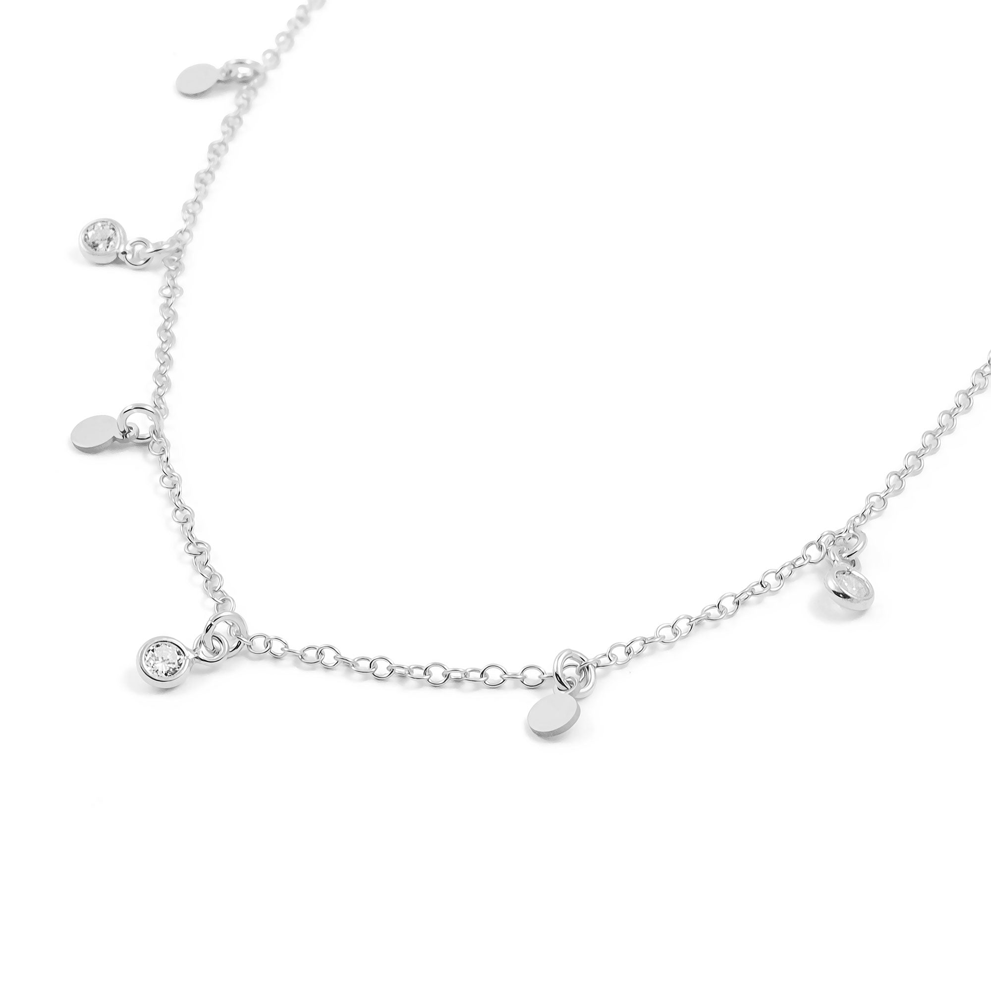 Sterling Silver Necklace Round Charms Shiny Zirconia