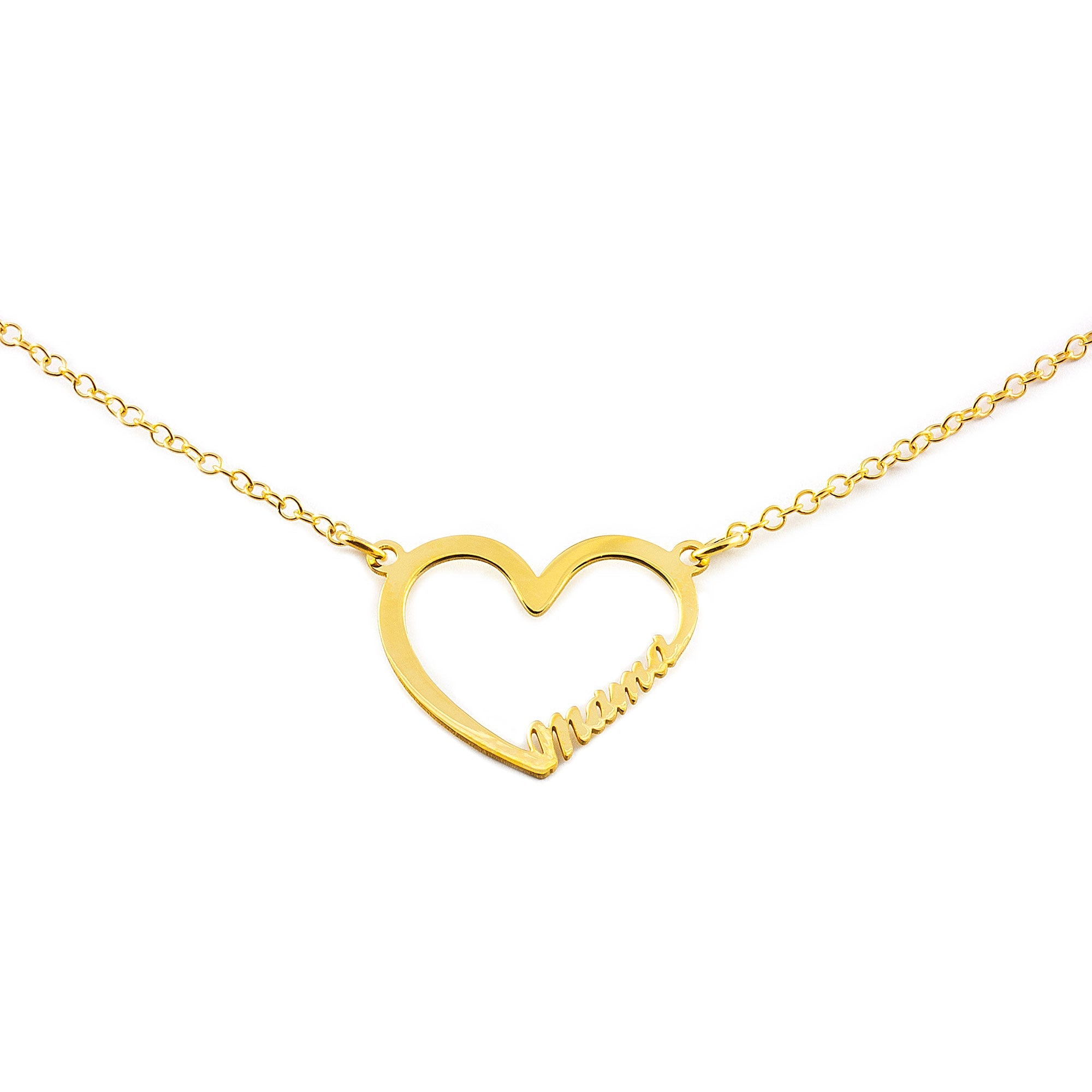Sterling Silver Golden Heart Mom Shiny Necklace