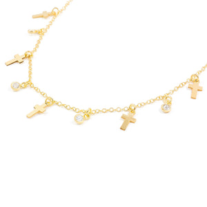 Golden Sterling Silver Crosses Shiny Zirconia Necklace