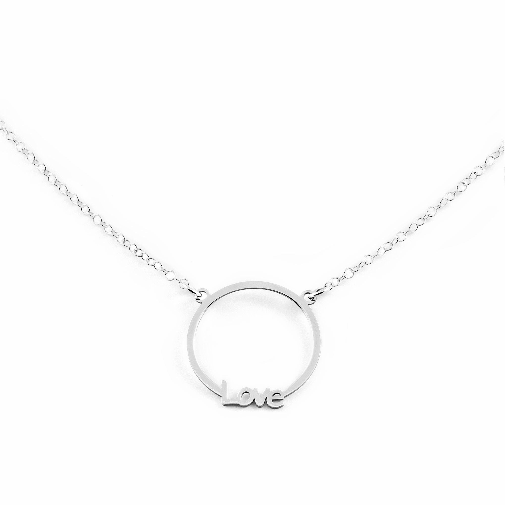 Shiny "Love" Round Sterling Silver Necklace