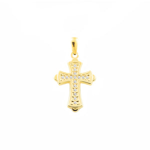 9K Yellow Gold Cross Rectangular Shiny Zirconia 20 x 13 mm