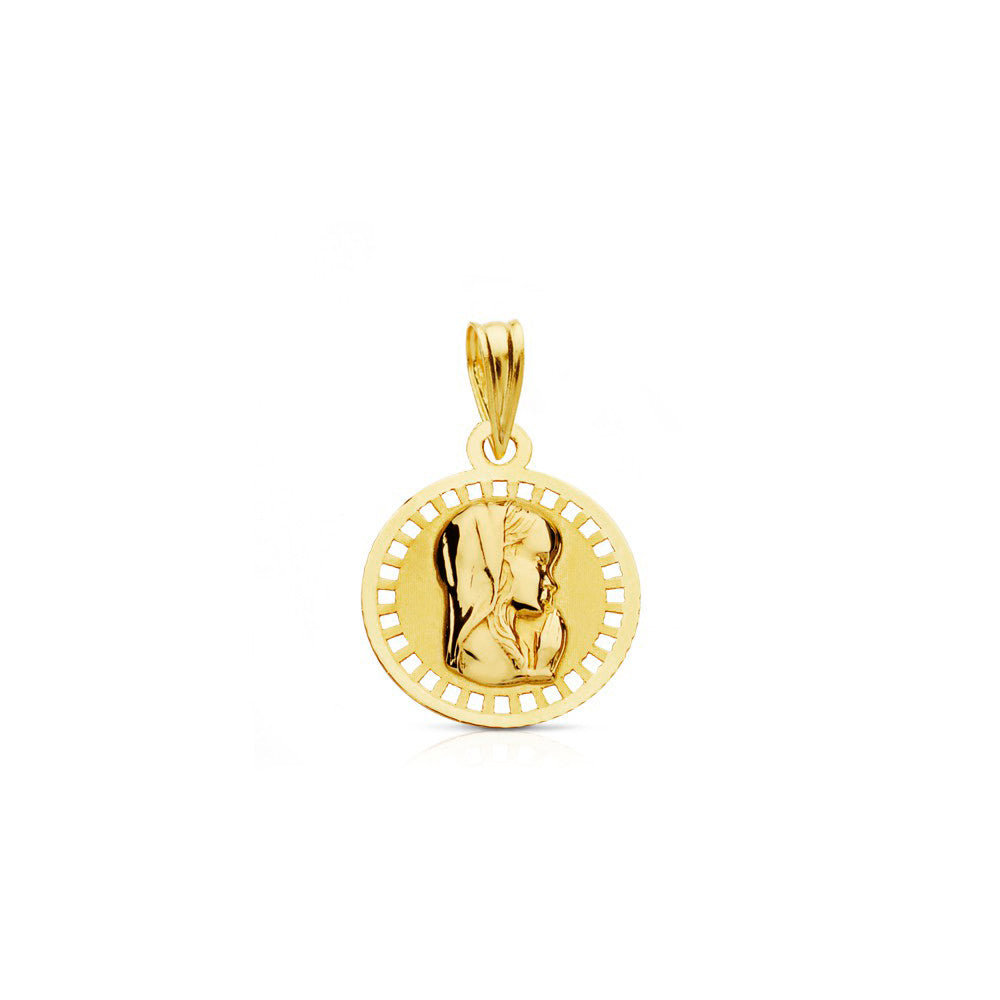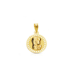 18K Yellow Gold Medal Personalized Virgin Girl Round Matte and Shiny 16 x 16 mm