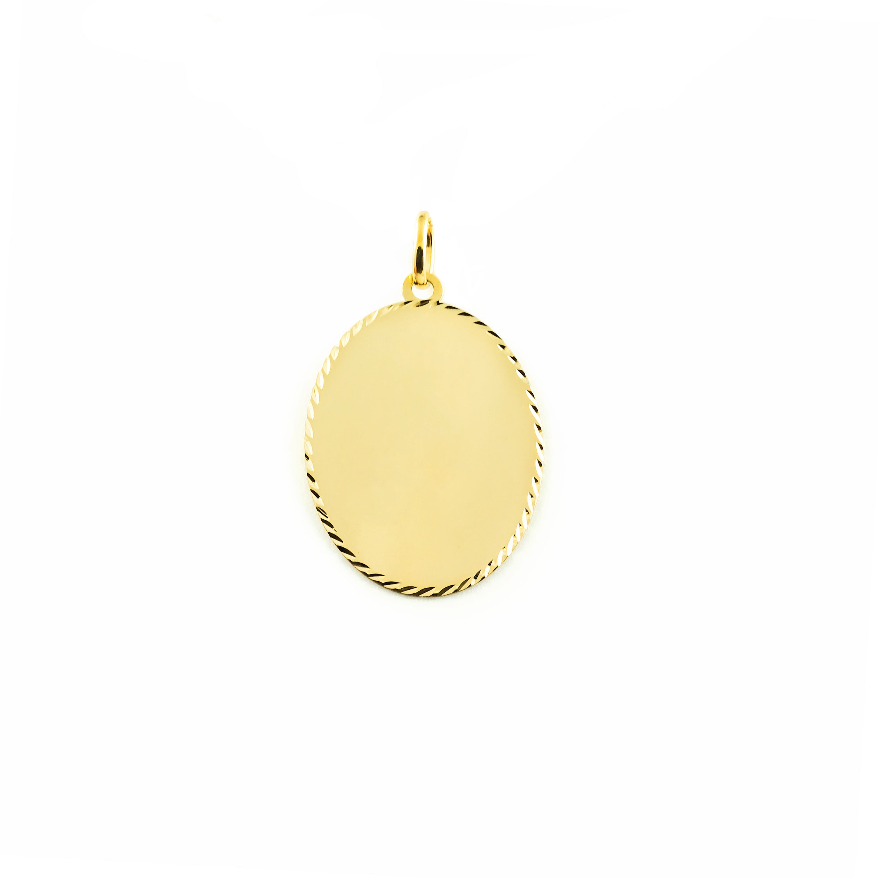 9K Yellow Gold Medal Personalized Oval Shine and Texture 31 x 22 mm