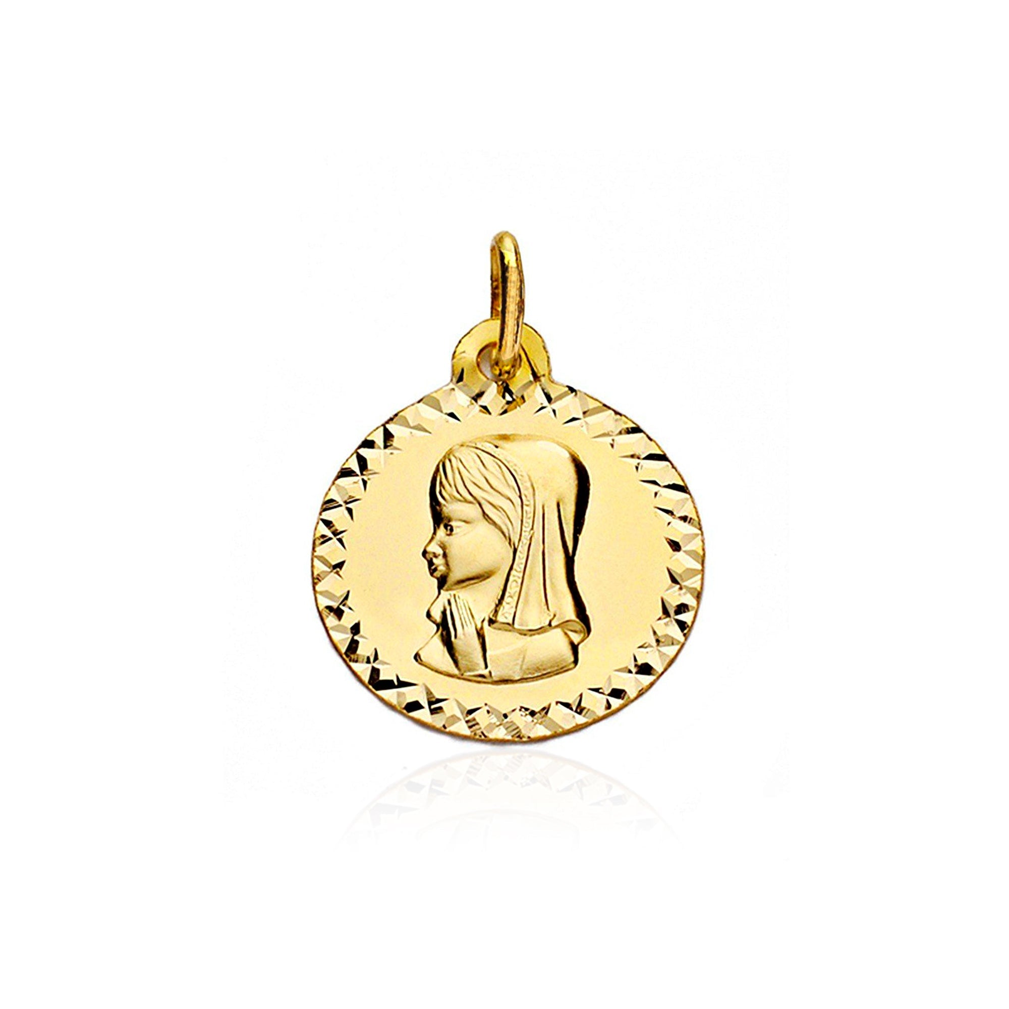 9K Yellow Gold Medal Personalized Virgin Girl Round Matte and Shiny 16 x 16 mm