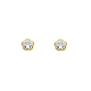 Baby-Girl Earrings 18K Yellow Gold Daisy Flower Shiny Zirconia