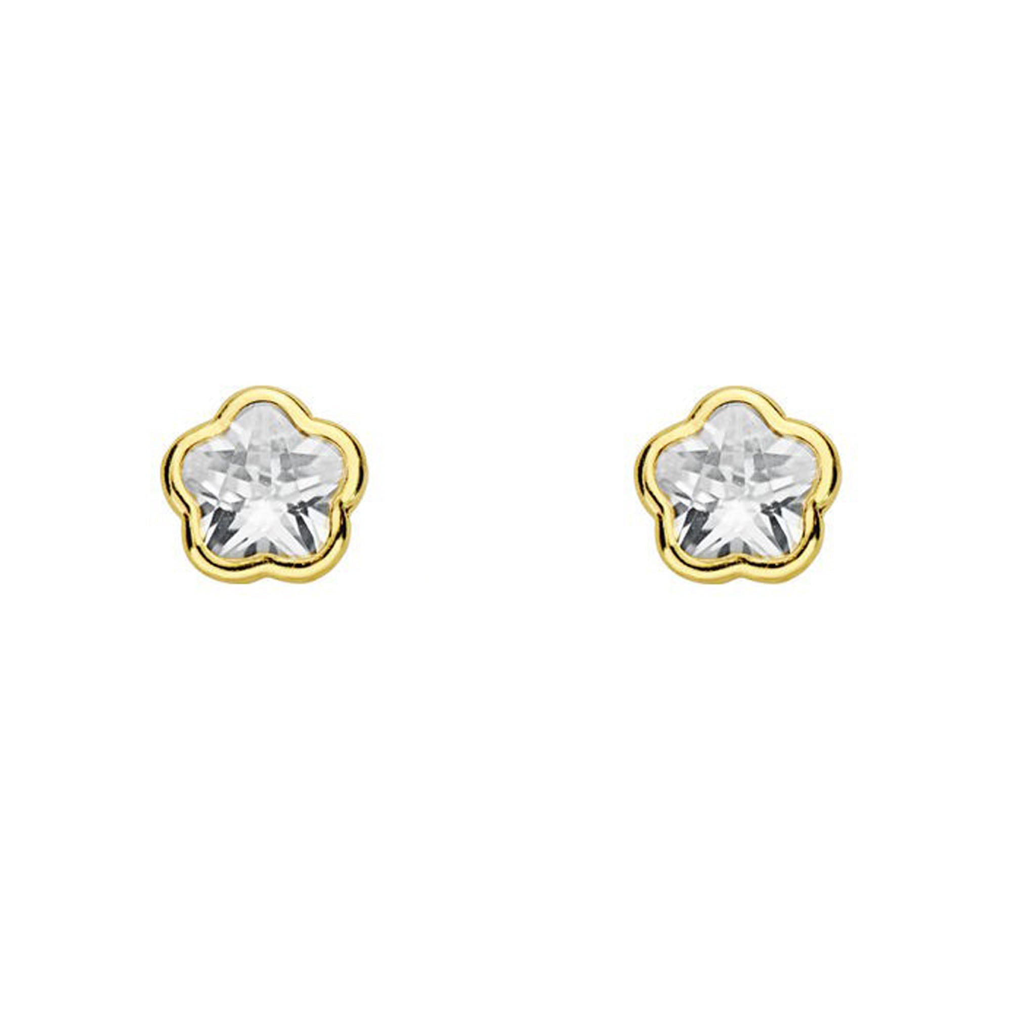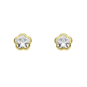 Baby-Girl Earrings 18K Yellow Gold Daisy Flower Shiny Zirconia