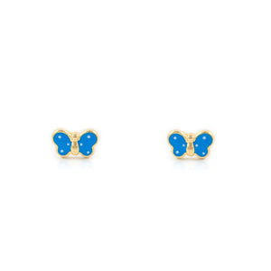 Baby-Girl Earrings 18K Yellow Gold Butterfly Intense Shiny Blue Enamel