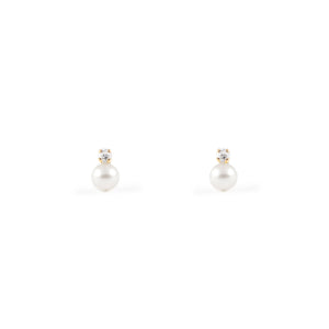 Baby-Girl Earrings 18K Yellow Gold Round Pearl 4 mm Shiny Zirconia