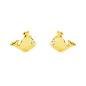 Baby-Girl Earrings 9K Yellow Gold Shiny Zircon Whale