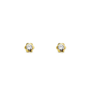 Baby-Girl Earrings 9K Yellow Gold Chatón Flower Shiny Zirconia