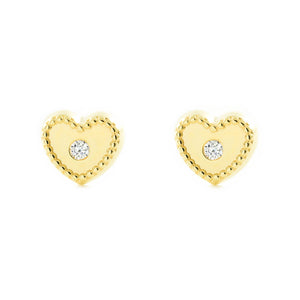 Baby-Girl Earrings 9K Yellow Gold Heart Zirconia Shine and Texture