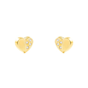 Baby-Girl Earrings 9K Yellow Gold Heart Shiny Zirconia