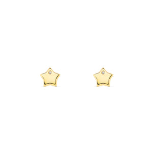 Baby-Girl Earrings 9K Yellow Gold Shiny Zircon Star