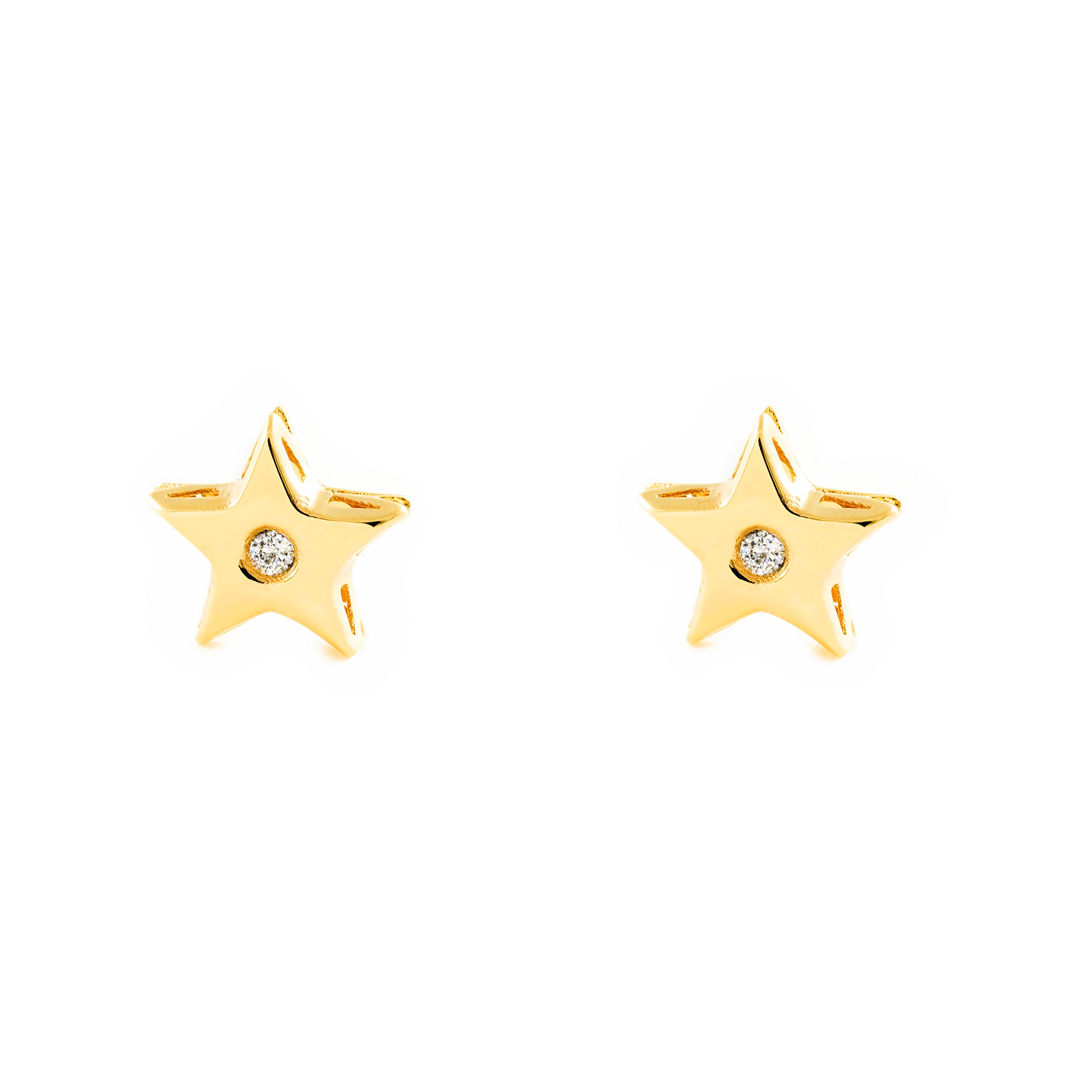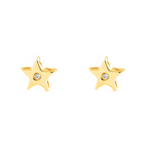 Baby-Girl Earrings 9K Yellow Gold Shiny Zircon Star