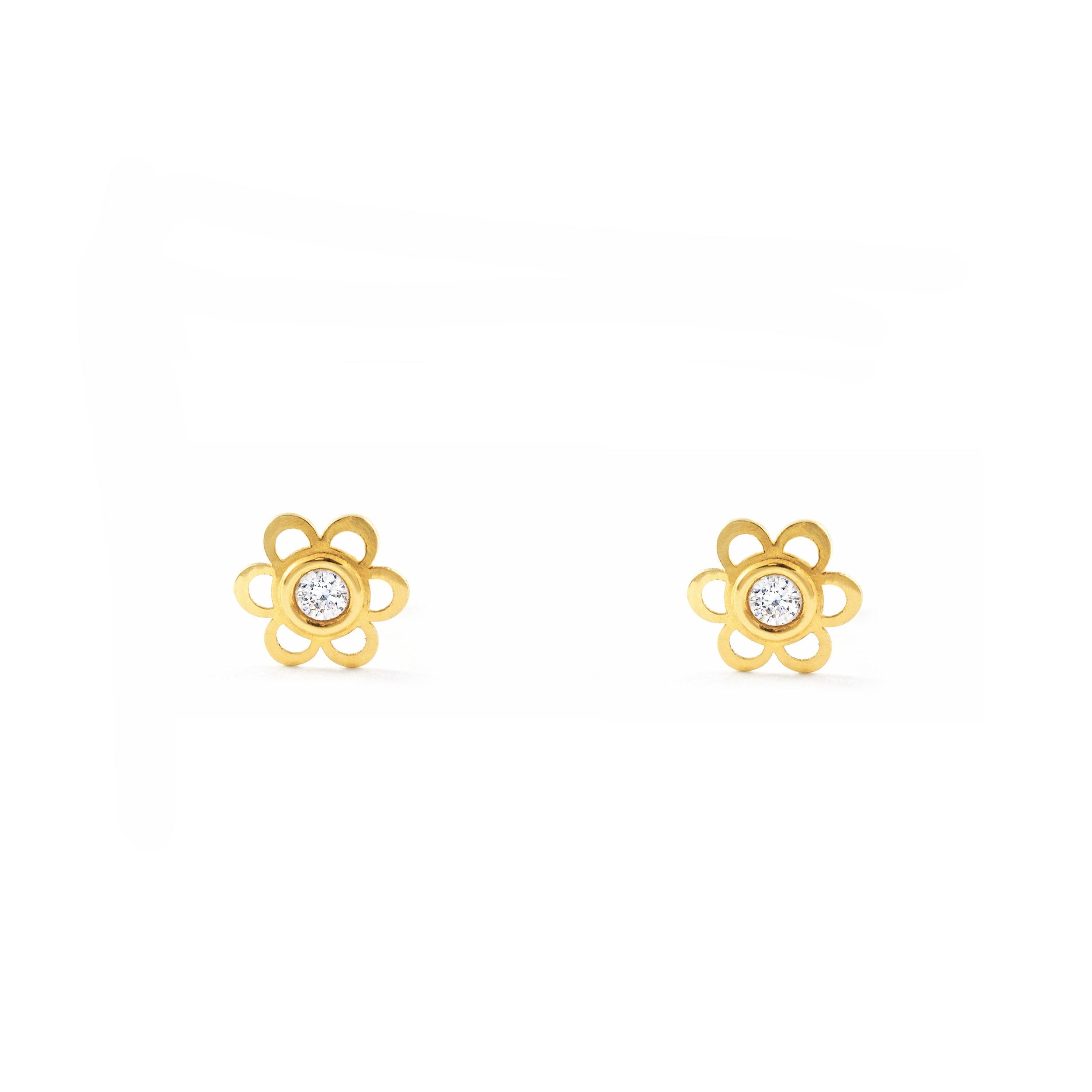 Baby-Girl Earrings 9K Yellow Gold Flower Daisy Shiny Zirconia