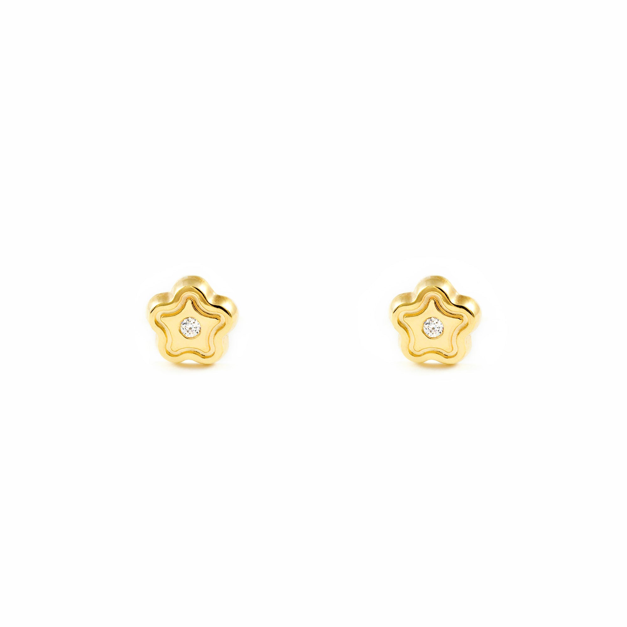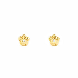 Baby-Girl Earrings 9K Yellow Gold Flower Daisy Shiny Zirconia