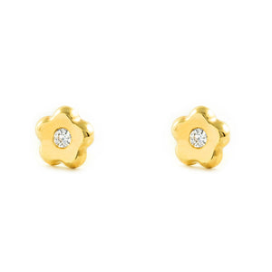 Baby-Girl Earrings 9K Yellow Gold Flower Daisy Shiny Zirconia