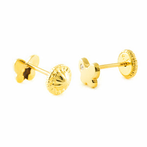 Baby-Girl Earrings 9K Yellow Gold Shiny Zircon Butterfly