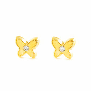 Baby-Girl Earrings 9K Yellow Gold Butterfly Zircon Shine and Texture