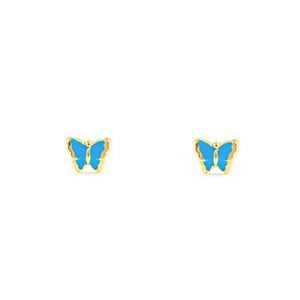 Baby-Girl Earrings 9K Yellow Gold Butterfly Intense Shiny Blue Enamel