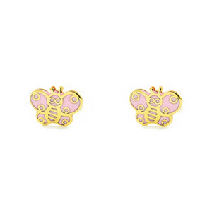 Baby-Girl Earrings 9K Yellow Gold Butterfly Shiny Pink Enamel