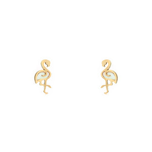 Baby-Girl Earrings 9K Yellow Gold Mother of Pearl Shiny Flamenco