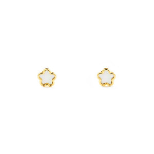 Baby-Girl Earrings 9K Yellow Gold Mother of Pearl Glitter Daisy Flower