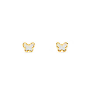 Baby-Girl Earrings 9K Yellow Gold Mother of Pearl Shiny Butterfly