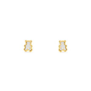 Baby-Girl Earrings 9K Yellow Gold Mother of Pearl Glitter Zirconia Bear