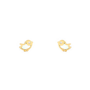 Baby-Girl Earrings 9K Yellow Gold Mother of Pearl Bird Shiny Zirconia