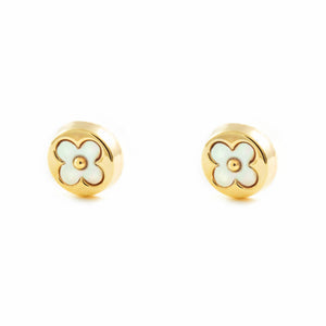 Baby-Girl Earrings 9K Yellow Gold Mother of Pearl Shiny Clover