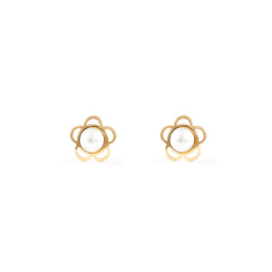 Baby-Girl Earrings 9K Yellow Gold Pearl Button 3.5 mm Bright Daisy Flower